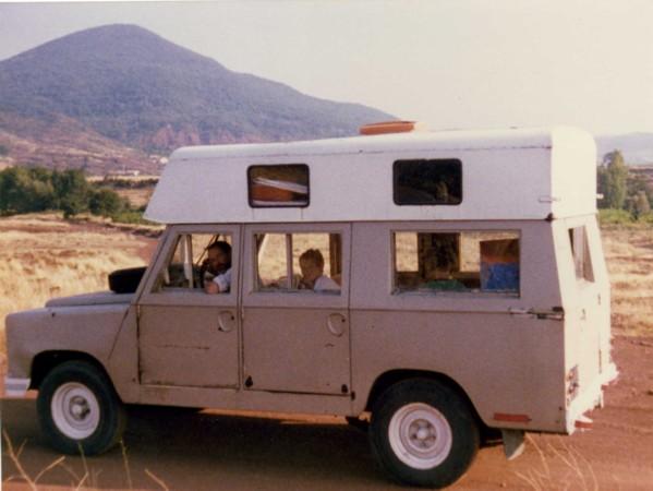 Arrival to the « Vassivière » lake (Limousin, centre of France), driving our first motor-caravan (August 1982).