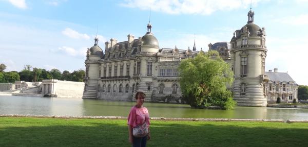 Simone admire le château de Chantilly (30 août 2013).