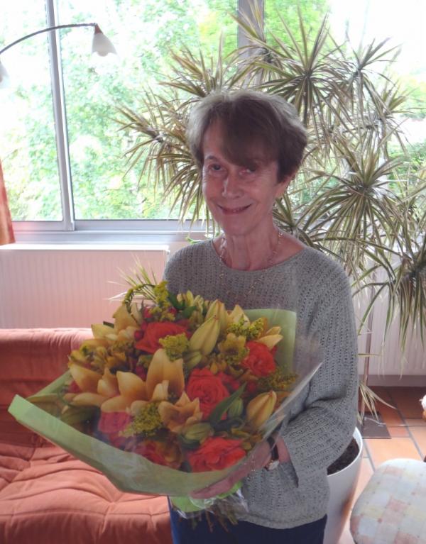 Simone a 70 ans aujourd’hui 8 juillet 2012 ! Elle tient le magnifique bouquet de fleurs qui lui a été offert par tous les enfants et petits enfants !