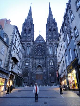 Simone devant la cathédrale de Clermont Ferrand (construite toute en pierre noire volcanique), le 1er octobre 2010.