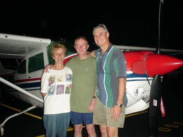 With Ron, in front of a Cessna 182, before a night flight over New York City (August 2000).