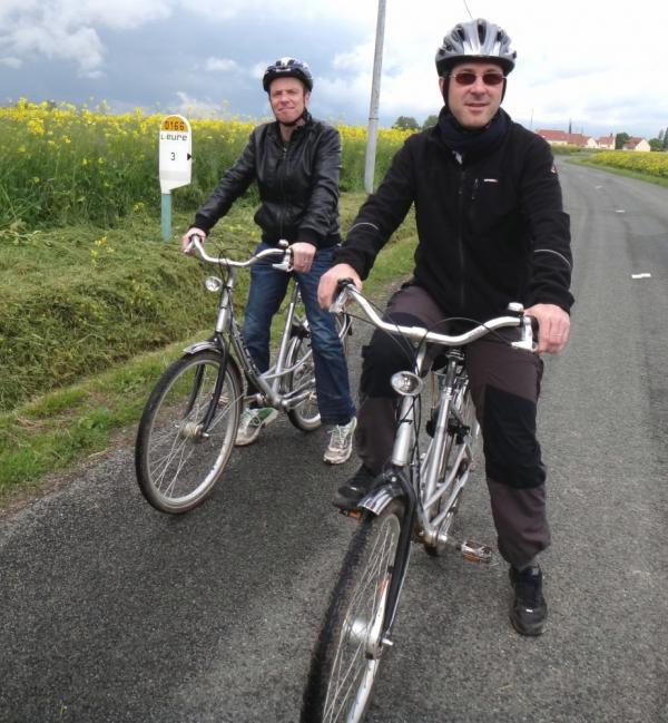 Biking with Stéphane and Nicolas in the Normandy countryside.