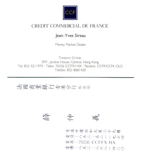 Jean-Yves business card when he worked in Kong Kong (1991).