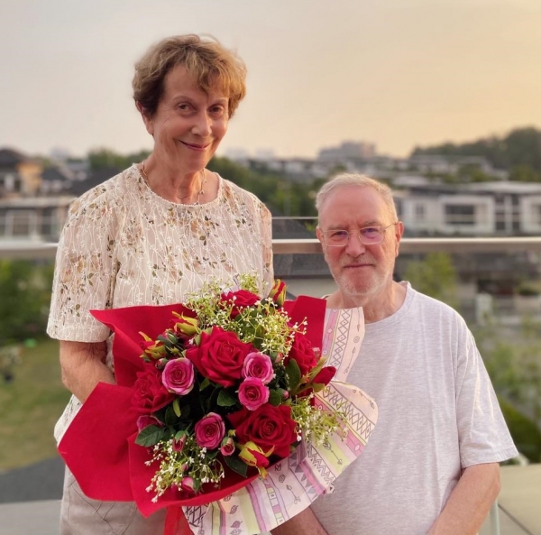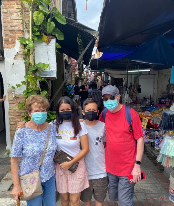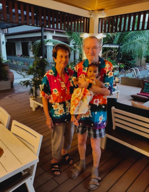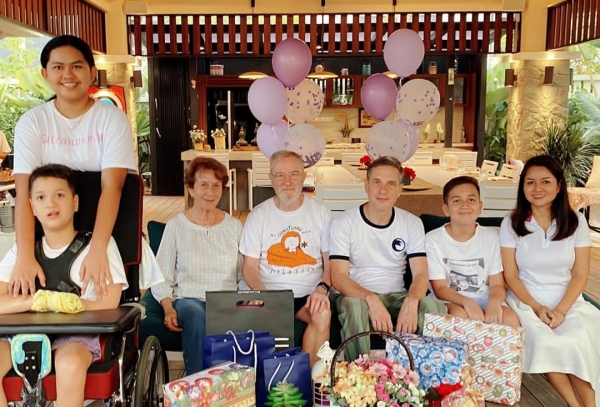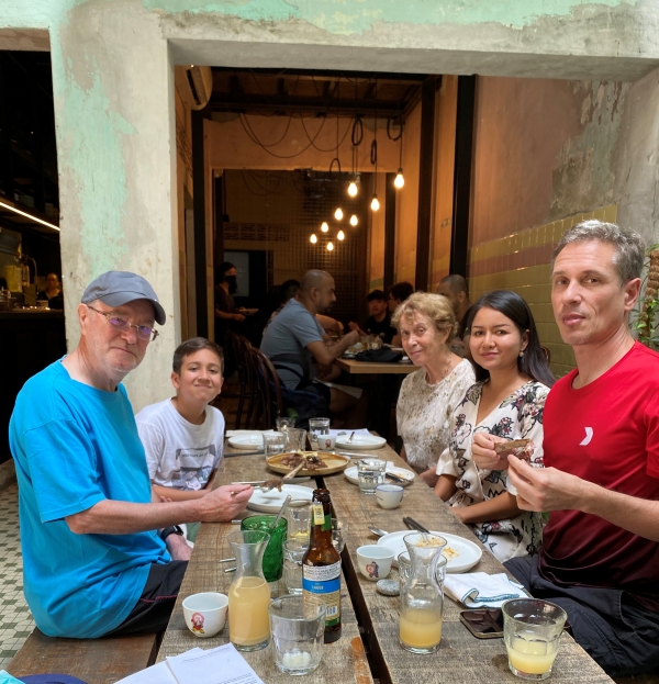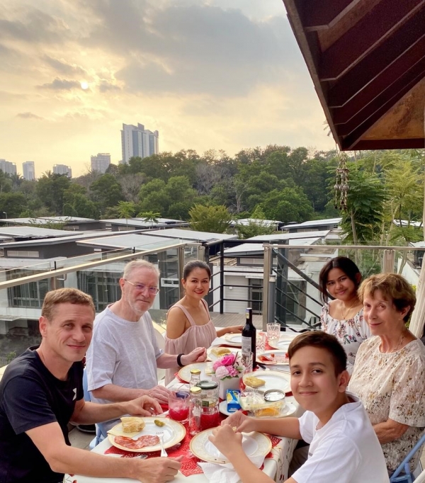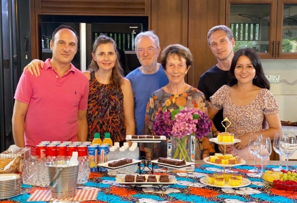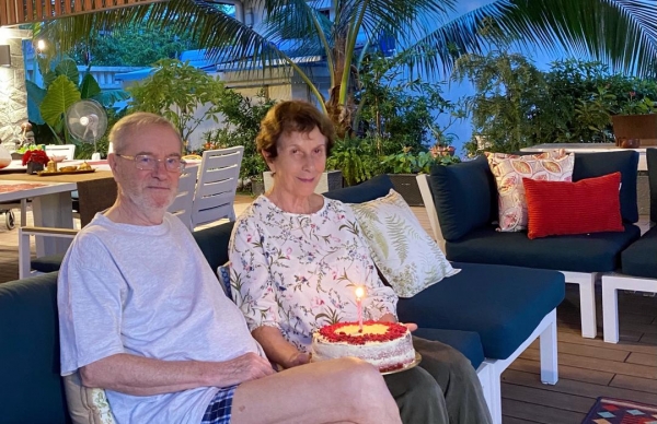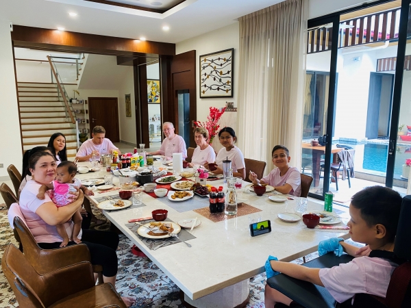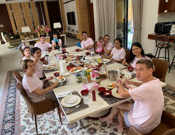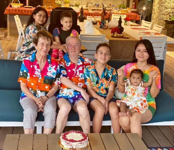 Nous fêtons l’anniversaire de Serge (79 ans) le 11 avril 2021 (Simone, Serge, Sylvain, Katrina, Kanda, Thanya Vincent).