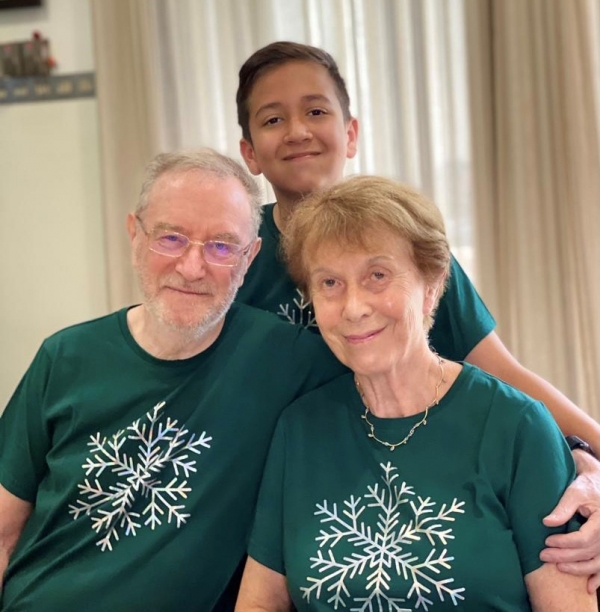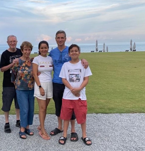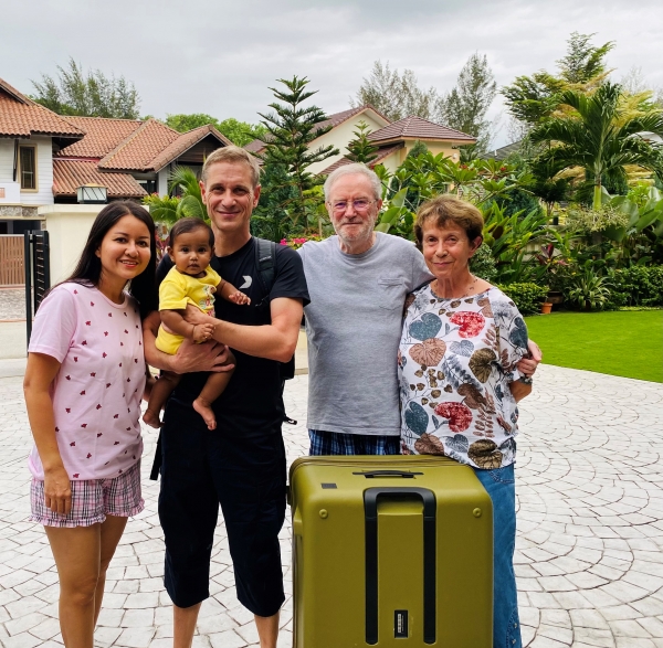 Simone, Sylvain et Serge, juste quelques minutes avant le départ de Sylvain (avec sa maman) pour Dubaï (19 06 21).
