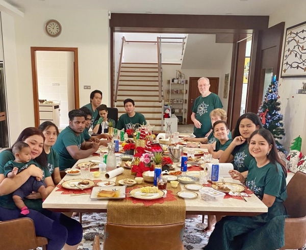 Le repas de Noël : Katrine, tess, Elly, Moachin, Ronnie, Bernard, Vincent, Mico, Serge, Simone, Sylvain, Thanya, Kanda