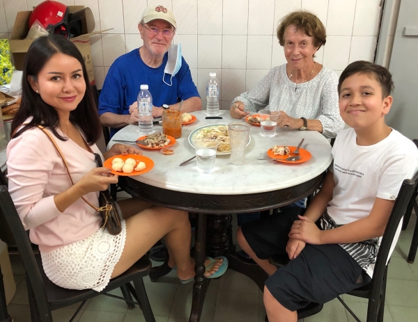 Déjeuner au restaurant « Best Chicken Rice » de Melacca (Kanda, Sylvain, Simone Serge) en juillet 2020.