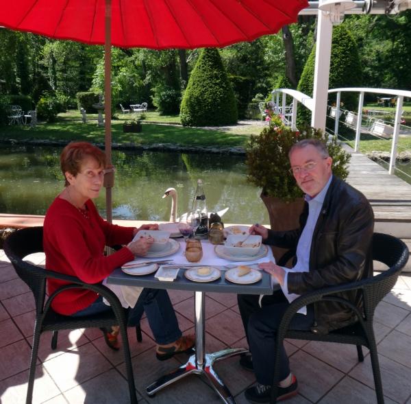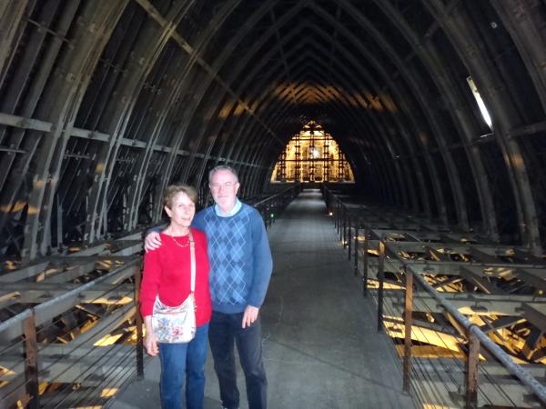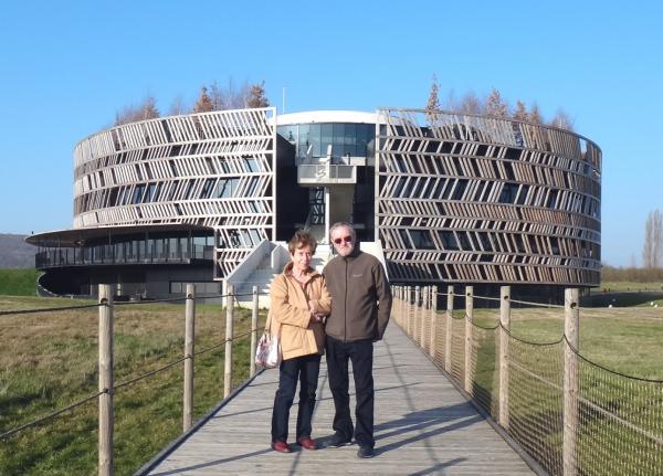 Simone et Serge devant le musée d’Alésia (Bourgogne, 10 mars 2014). La bataille d’Alésia eu lieu en 52 avant J.-C. entre les Gaulois conduits par Vercingétorix (80.000 hommes) et dix légions romaines de César (70.000 hommes).