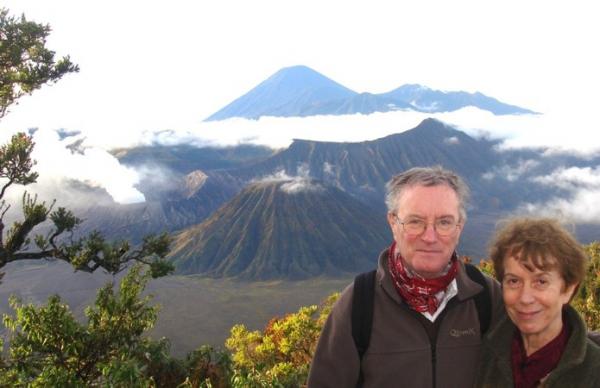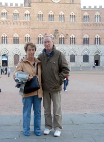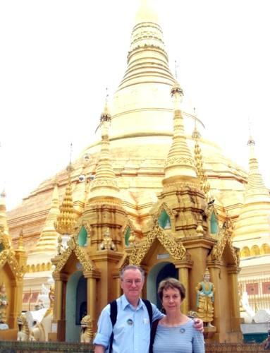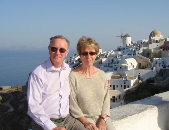 Serge souhaite un bon anniversaire de 40 ans de mariage à Simone, tandis que Stéphane amène le gâteau d’anniversaire !