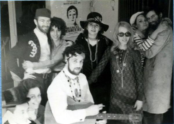 Soirée déguisée chez Serge et Simone dans leur appartement de Sèvres au printemps 1971 (sur la photo : Serge et Simone, Yvain et Nicole, Noëlle, Jean-Pierre et marie-Hélène).