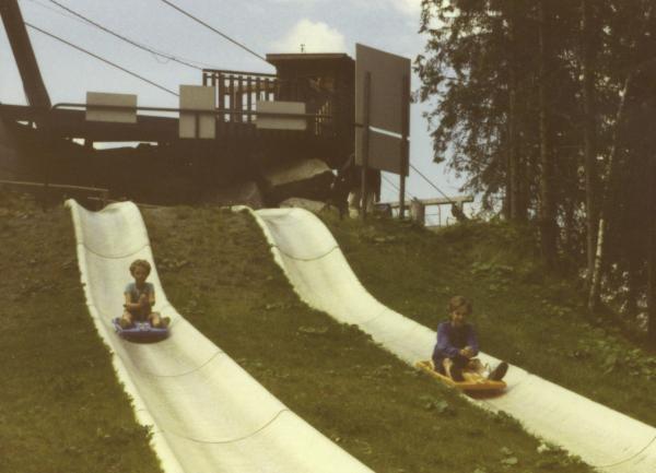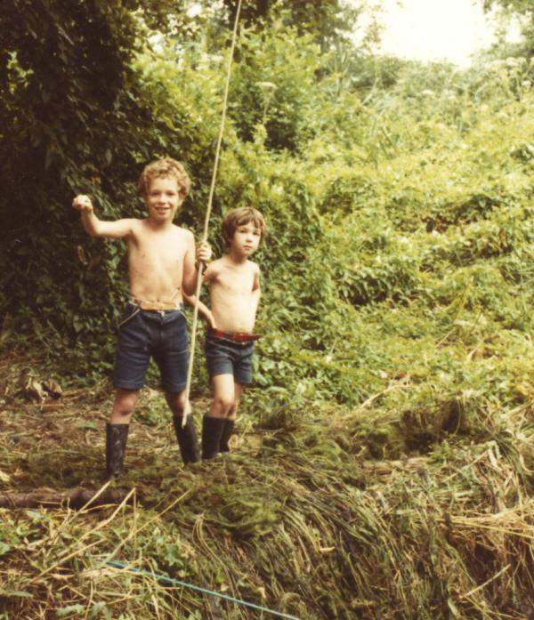 Nicolas et Stéphane pêchent dans un étang près de Cessenoud. Ils ont même attrapé un poisson ! (août 1982).