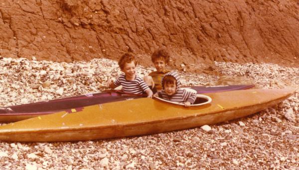 Nicolas, Jean-Yves et Stéphane à la plage de La Faute sur Mer (Vendée, août 1981) sur leur « Kidjet Nautico ».