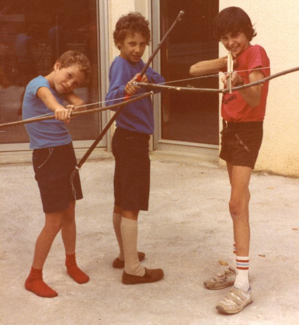 Les trois tireurs à l’arc, Nicolas, Jean-Yves et Dominique Whitehead (L’Etang la Ville, septembre 1982).