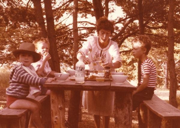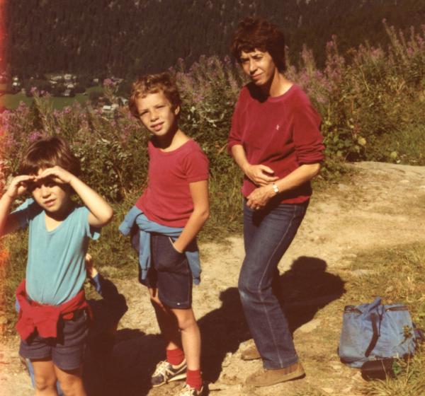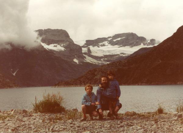 Arrêt au Touquet lors d’un trajet France – Lancashire dans notre Volvo 340 (été 1981). Sur la photo : Jean-Yves, Simone et Nicolas.