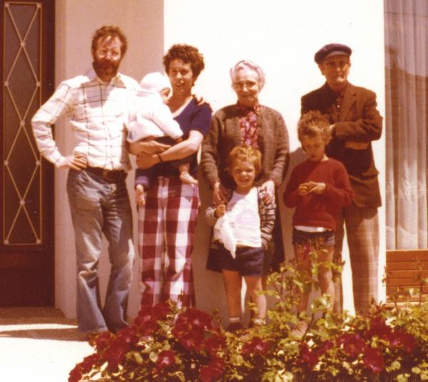A l’Aiguillon-sur-mer en 1979 : Serge, Stéphane, Mamie (Hélène Renée Sireau), Papy (Ludovic Léon Gabriel Sireau), Jean-Yves, Simone, Nicolas.