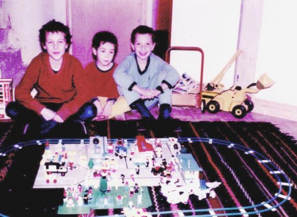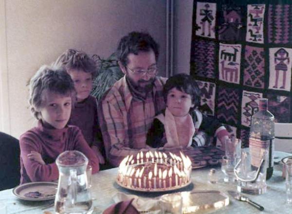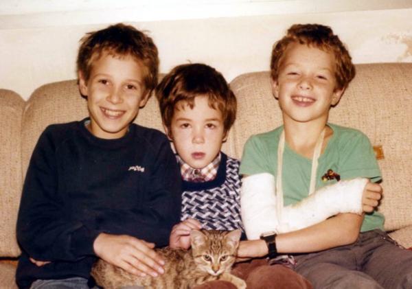 Jean-Yves, Stéphane et Nicolas en octobre 1981 à l’Etang la Ville (avec notre chat Dadou). Nicolas s’est cassé le bras le premier jour de l’école !