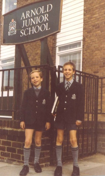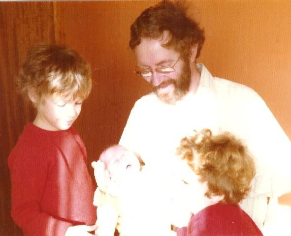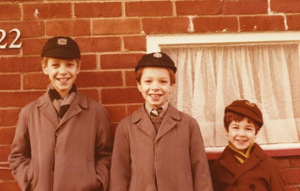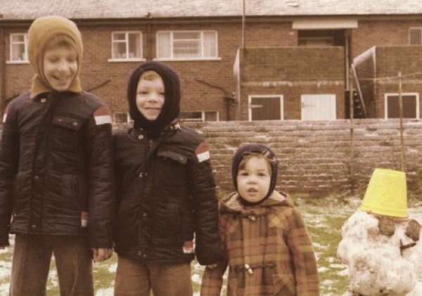 Jean-Yves et Nicolas admirent leur jeune frère âgé de presque 3 semaines ! (ANSDELL, Lancs, GB, 28 OCTOBRE 1976)