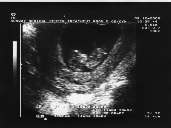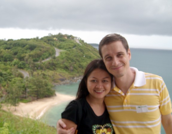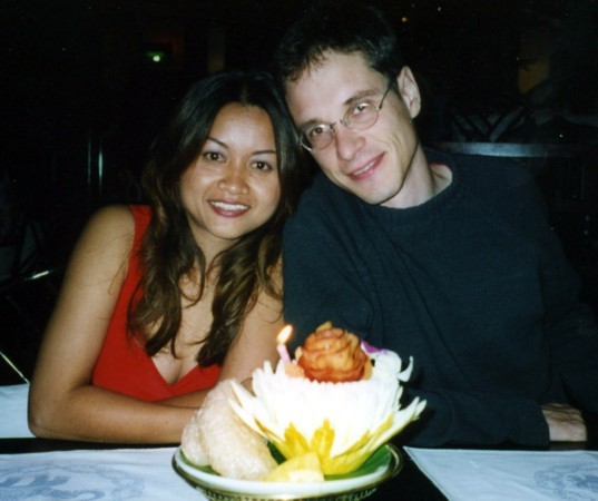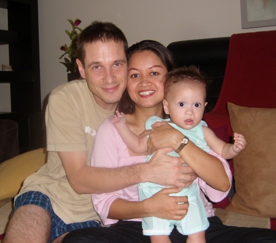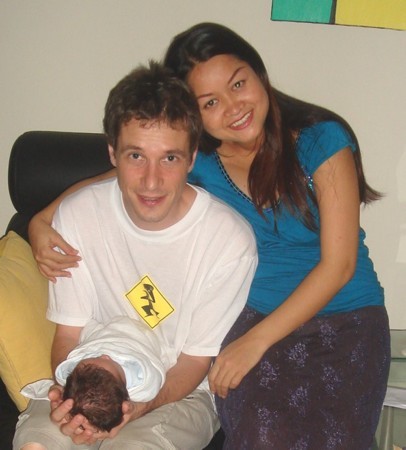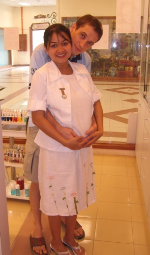 Kanda (à 7 mois de grossesse) et Jean-Yves dans le salon de beauté de Kanda (Cyberjaya, Kuala Lumpur, avril 2007).