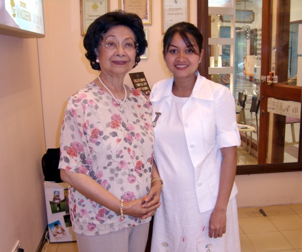 Dans le salon de beauté de Kanda : Kanda et la femme du 1er Ministre (Cyberjaya, Malaisie, avril 2007).