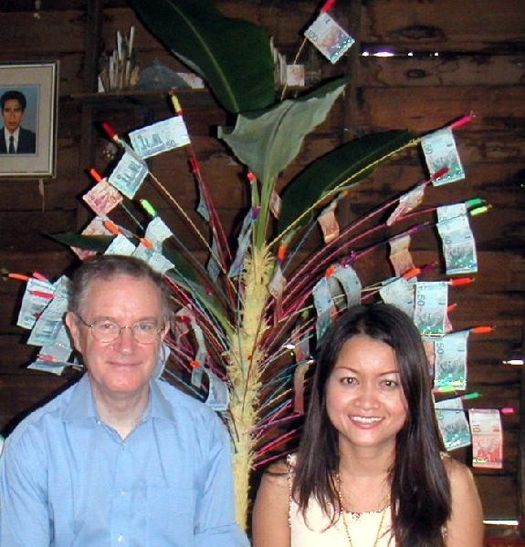 Dans le village de Kanda, devant l’arbre à offrandes aux Bonzes (Nord de la Malaisie, novembre 2005).