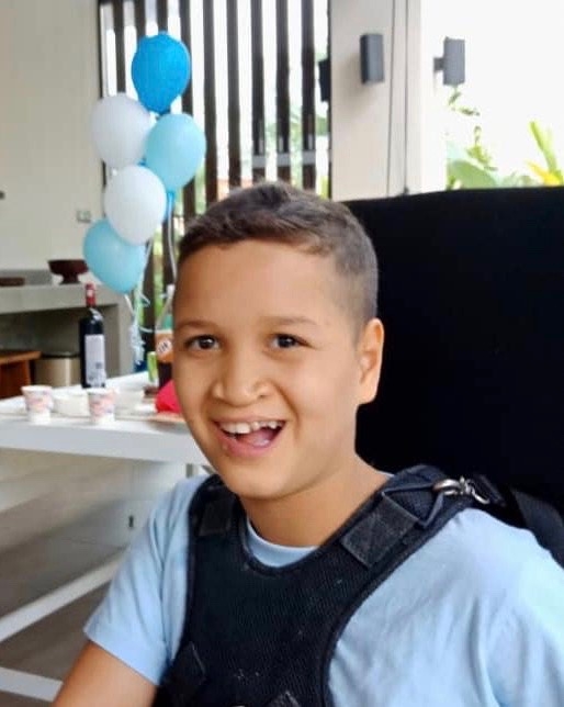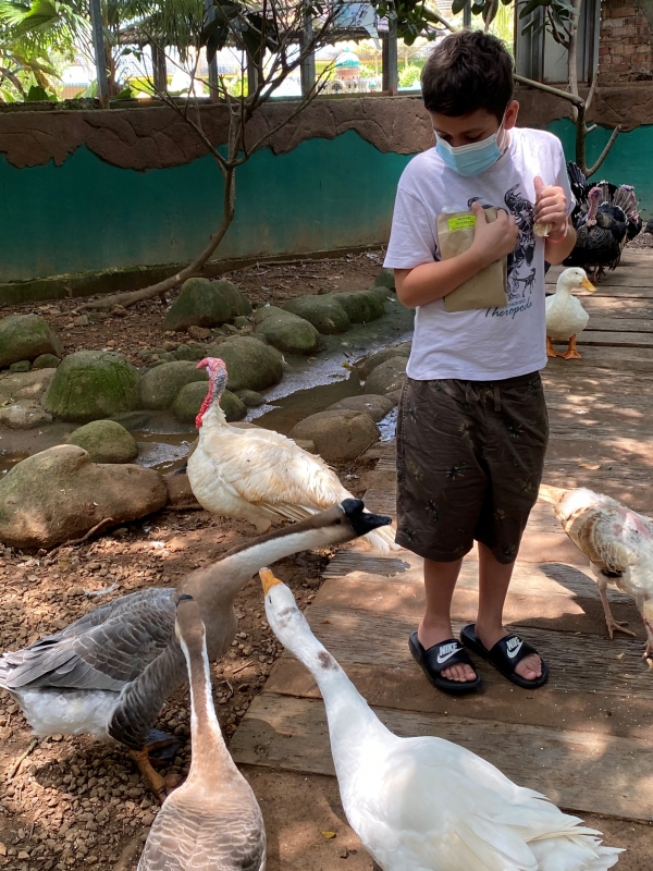 Serge et Simone devant la piscine qui est au sommet de notre hôtel « Casa del Rio » à Melacca (juillet 2020).
