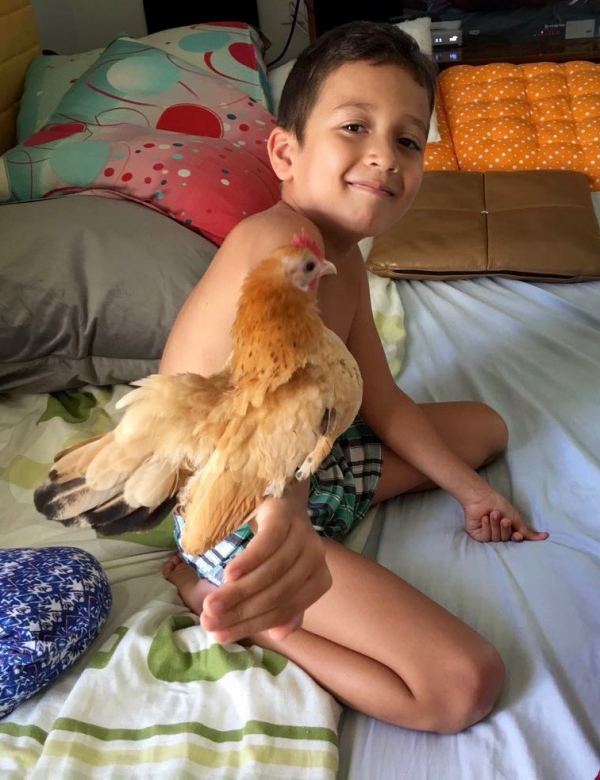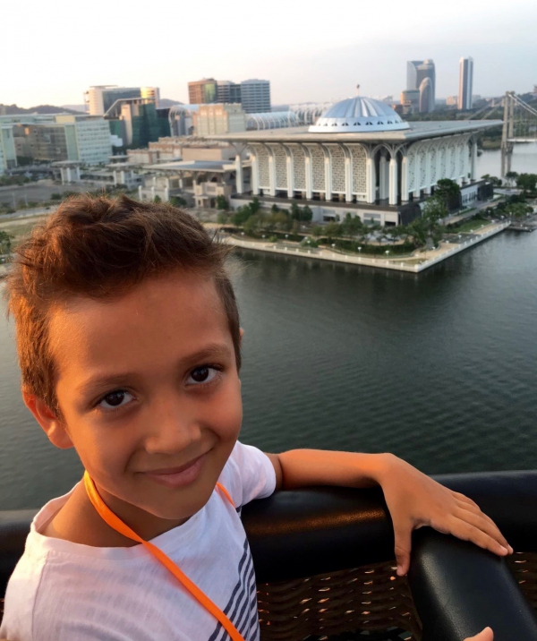 Sylvain, sa mère et sa grand-mère à son école, Lexus International School, Putrajaya, le 9 janvier 2017,