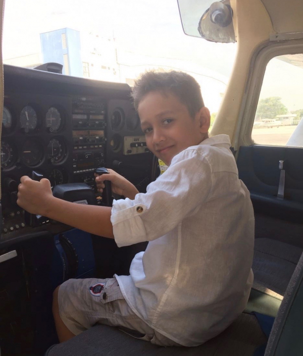 Sylvain au poste de pilotage du Cessna dans lequel il a fait un vol aller / retour sur Tioman (14 mai 2016).