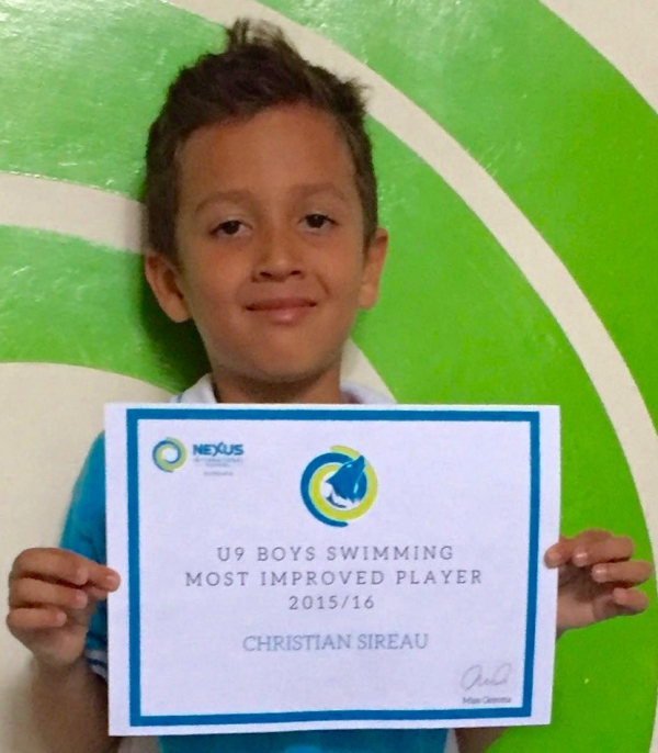 Sylvain montre avec fierté son diplôme du nageur qui s’est le plus amélioré en 2016 (9 juin 2016, Putrajaya)!