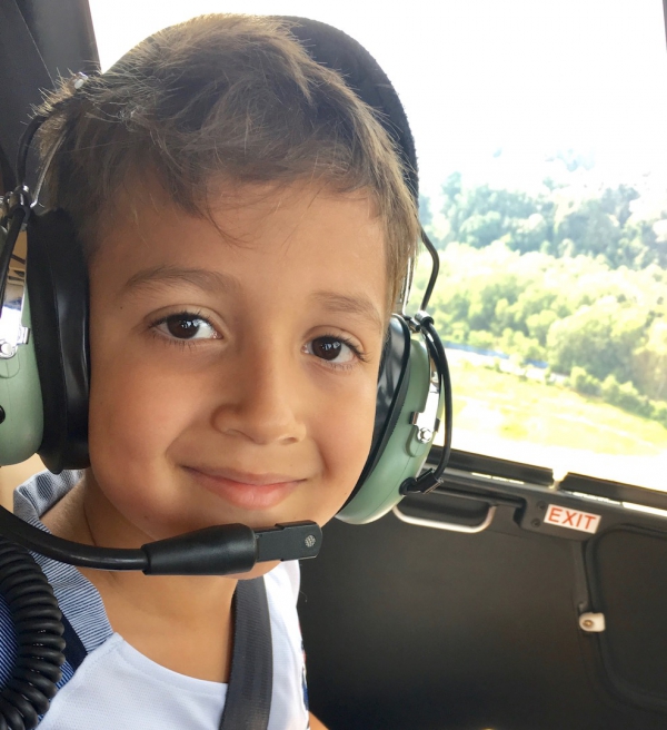 Sylvain en vol dans l’hélicoptère qui nous a emmené au dessus de Lexis Hibiscus (Port Dickson, 7 janvier 2017).
