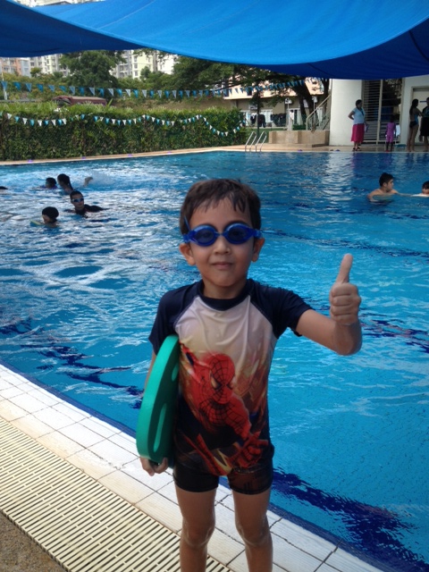 Sylvain et Kanda sont heureux parce que Sylvain a gagné le premier prix de natation (KL, 13 novembre 2014).