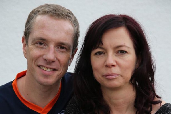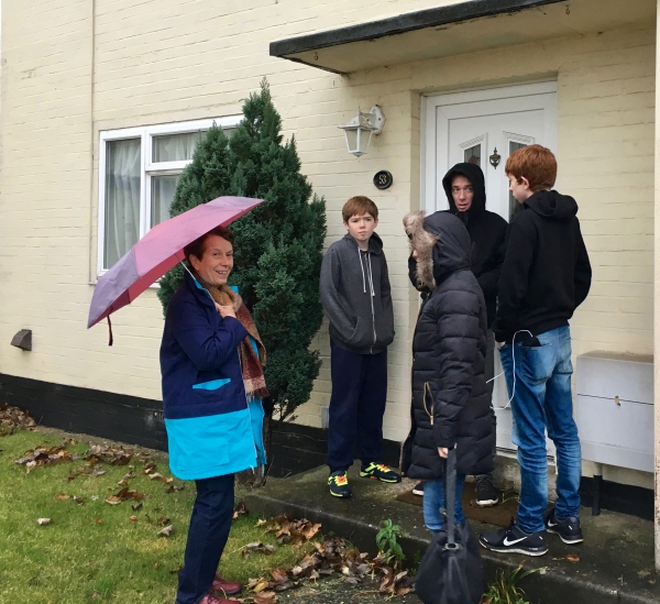 Daniel, Julien, Sonya, Nicolas et Simone à l’entrée de la nouvelle maison de Byron Square (Trumpington, 12 novembre 2016).