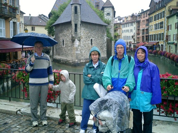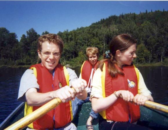 Nicolas, Sonya et Simone font de la barque sur le lac de la pourvoirie de La Tuque au Québec (été 1999).