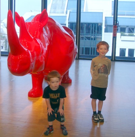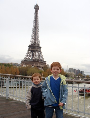 Julien et Daniel sont sur la passerelle entre le Musée d’Art Moderne et le Musée du Quai Branly (avril 2008).