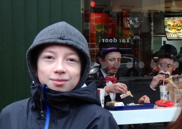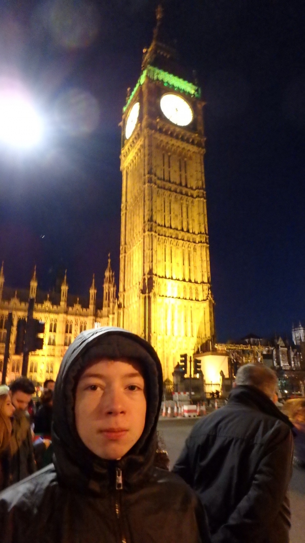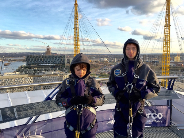 Julien & daniel devant la jetée (et le téléphérique) du bateau navette de retour à Londres (16 février 2016).