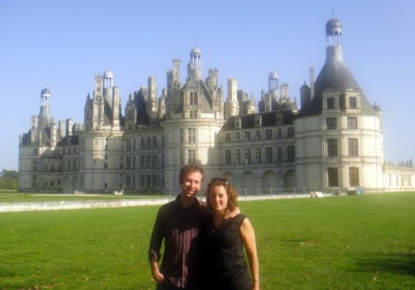 Stéphane et Caroline parlent à des aristocrates de l’époque François 1er (Chambord, 9 octobre 2010).)