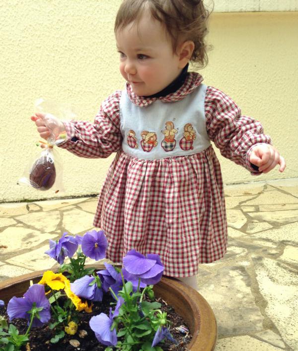 Joséphine a trouvé un oeuf de Pâques en chocolat dans un pot de fleur ! (L’Etang la Ville, 22 avril 2014).