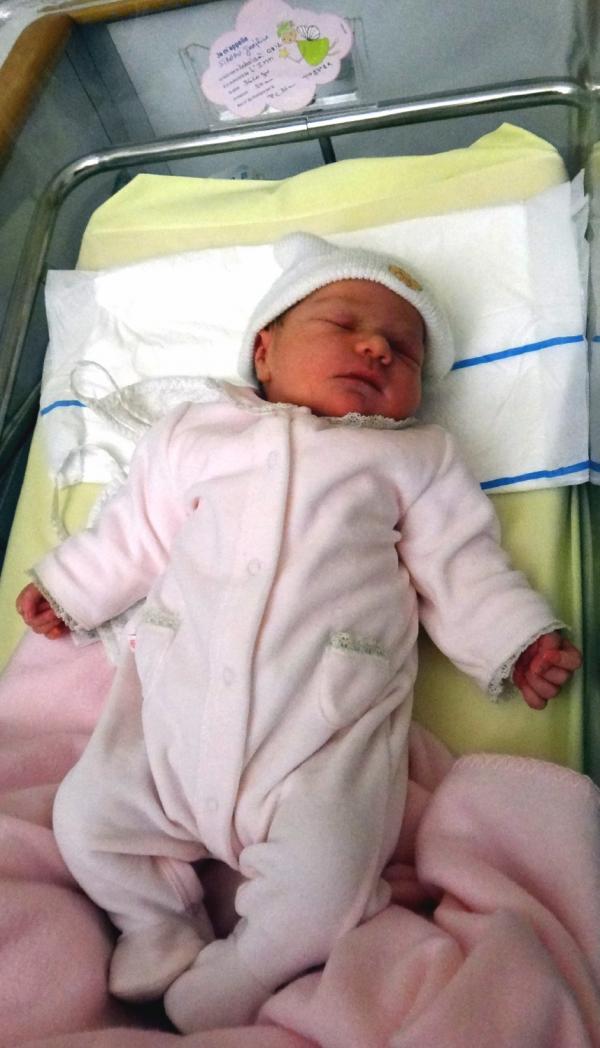 Joséphine dans son berceau le jour de sa naissance (20 mars 2013, Institut Mutualiste Montsouris, Paris)..