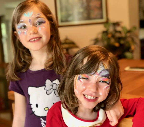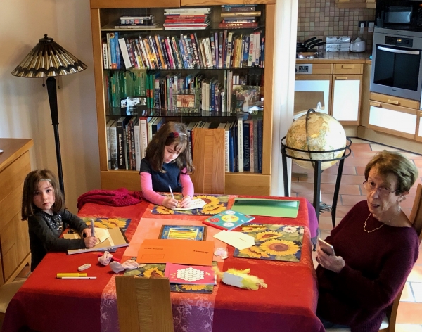 Joséphine, Eléonore, Timoté et Alexane jouent à 1, 2, 3, pierre, feuille, ciseaux (19 mai 2019, Le Vésinet).