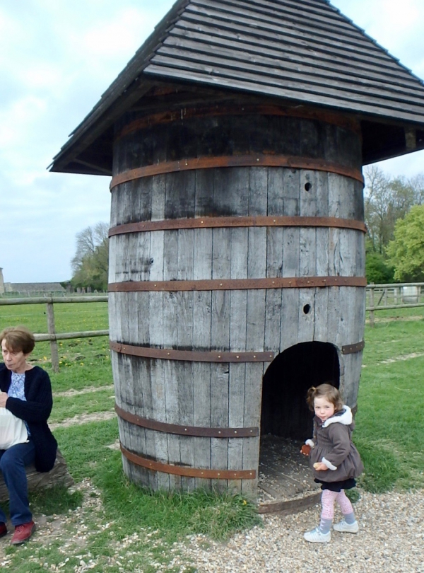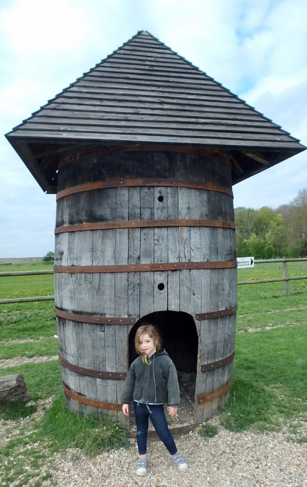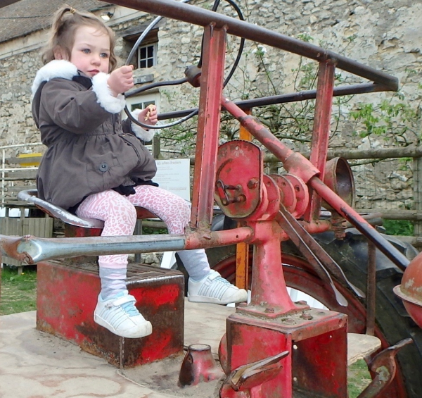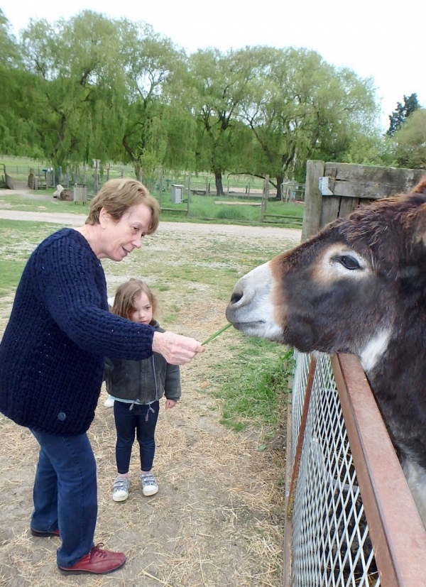 Eléonore, dans les bras de son grand-père, n’est pas rassurée par l’âne (ferme de Gally, 14 avril 2017).