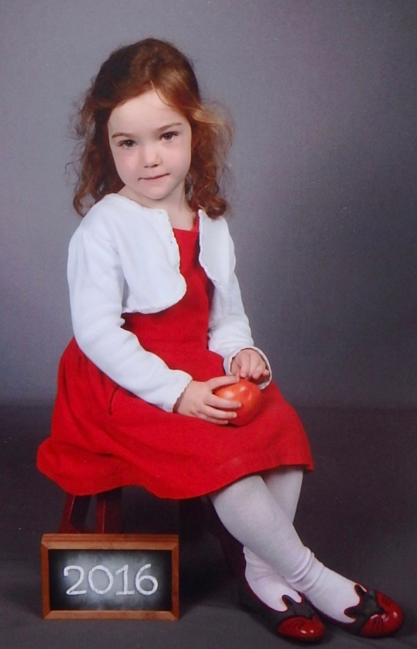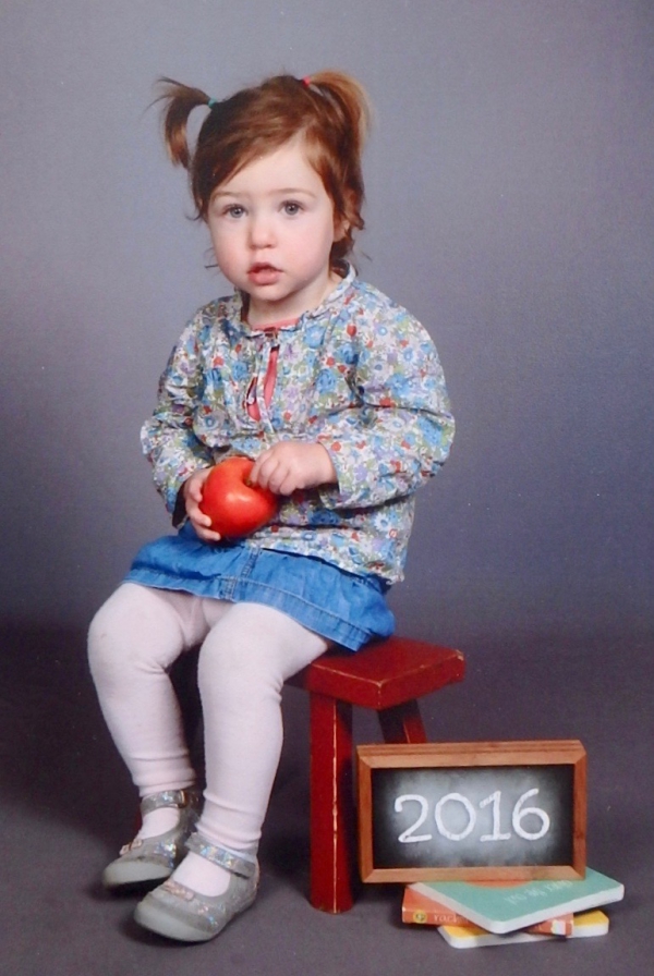 Eléonore et Joséphine, avec leur Maman, à l’entrée de la crèche (premier jour d’Eléonore à la crèche, 19 juillet 2016)