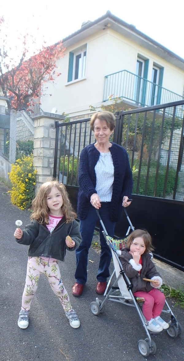 14 avril 2017 : Stéphane, Caroline, Joséphine et Éléonore sur la place du village à l’Étang la Ville.