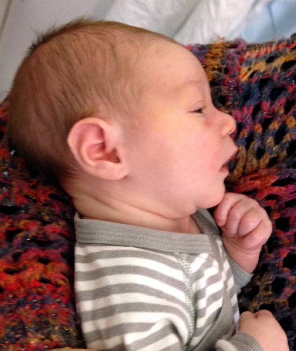 Eléonore et Joséphine avec leur grand-père Papy et leur grand-mère Mamie (Clinique St Joseph, Paris, 28 février 2015).