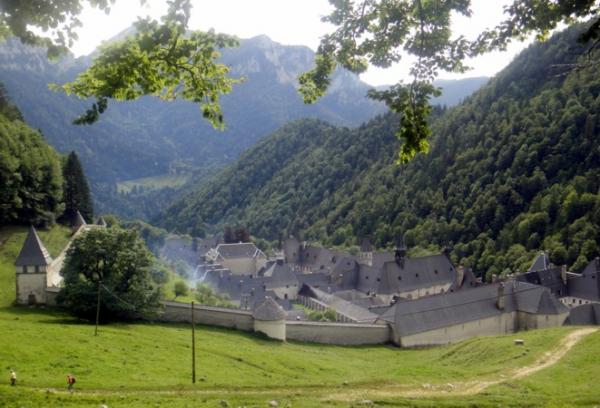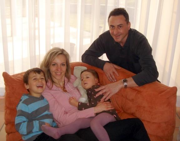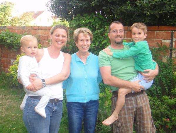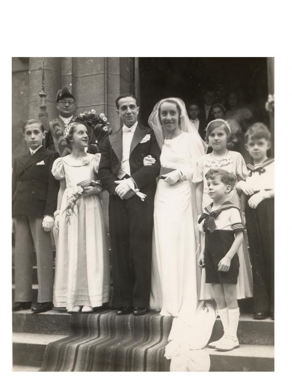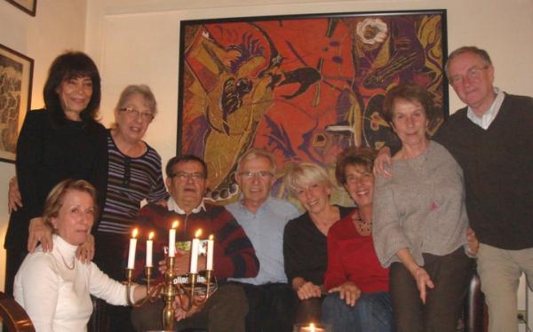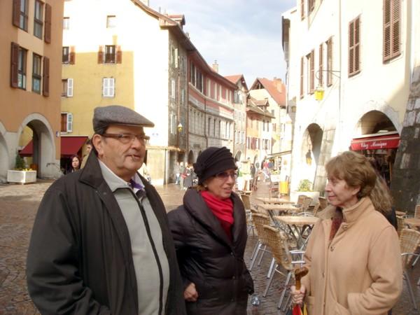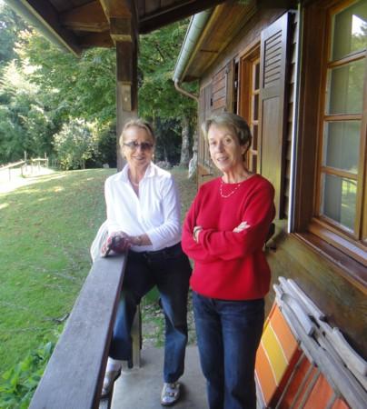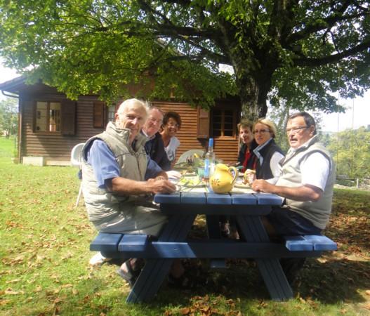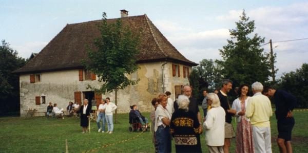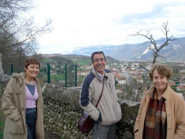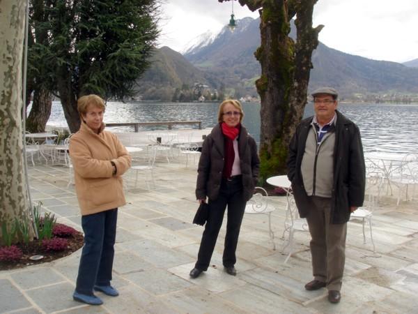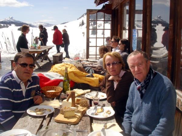 Nicole, Hélène, Noëlle, Simone, Bon Papa, Anne, (Marie-France, amie de Françoise), Françoise, sur la terrasse du châlet de Lépin en avril 1962.