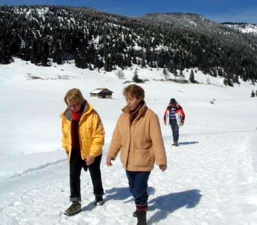 Françoise (Marie-France, amie de Françoise), Nicole, Martine (amie de Simone), Simone et Noëlle chez Arthur à La Clusaz (Avril 1962).