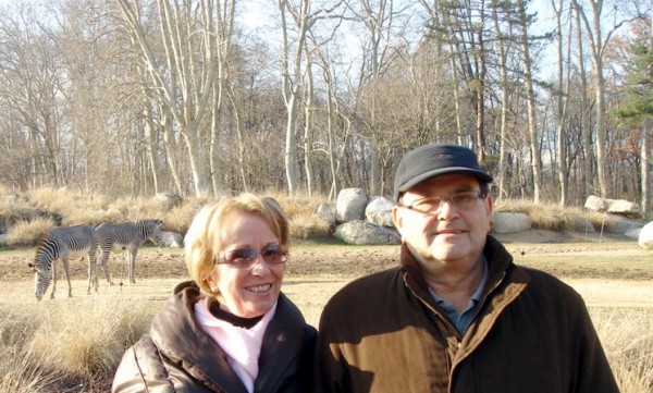 Françoise et Alain devant l’enclos des zèbres à la « plaine Africaine » du parc de la Tête d’Or (Lyon, janvier 2007).