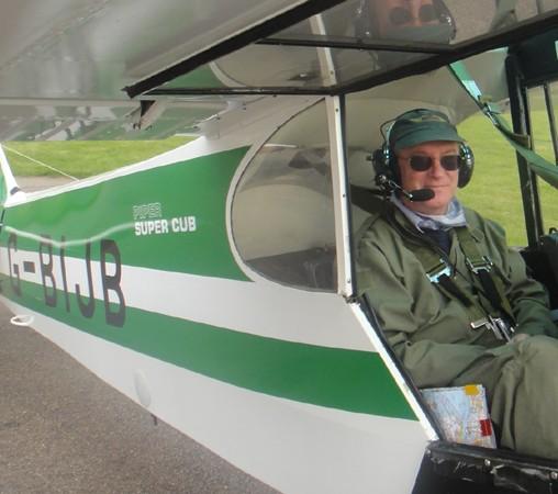 Serge dans le Piper Super Cub de Maurice à l’aérodrome de Stapleford après notre retour de Sywell (3 septembre 2011).