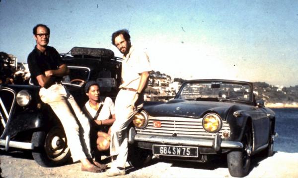 A Toulon, de retour de Turquie avec Geoff et notre amie Catherine (fin août 1969), devant la Triumph TR4 de Geoff et ma Traction Citroën.