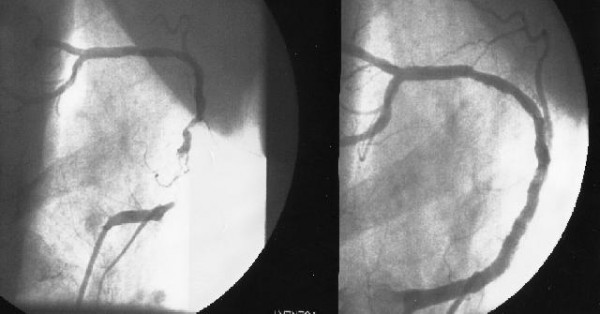 Radios de mon artère coronaire droite, avant et après installation de deux stents sur 4cm (OSHKOSH, 29 JUILLET 2005)
