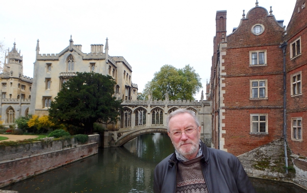 Serge devant le « pont des soupirs » sur la rivière Cam (collège St John, Cambridge, 19 octobre 2015).