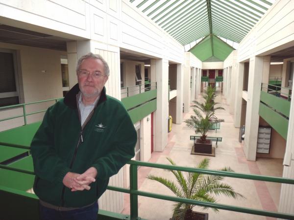 Serge dans le bâtiment de Promopole (pépinière d’entreprises), près du nouveau bureau de l’ALCAP (26 mai 2013).